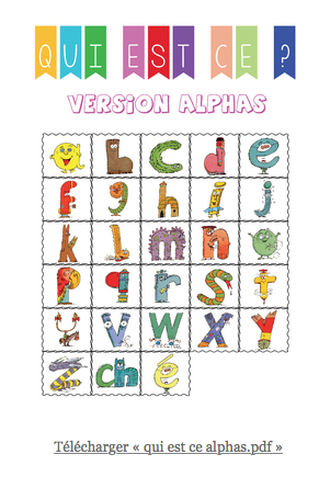 Cartes à imprimer sur le thème des Alphas. Jeu du qui est-ce?