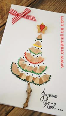 Carte de voeux de Noël, avec très peu de moyens pour un max d’effets!!! Les enfants se régaleront à créer cette jolie carte de Noël avec de simples épluchures de crayons de couleur