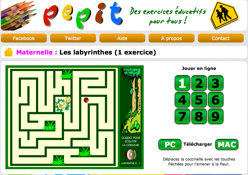 C'est un didacticiel contenant plusieurs exercices autour du labyrinthe. Convient dès 4 ans.