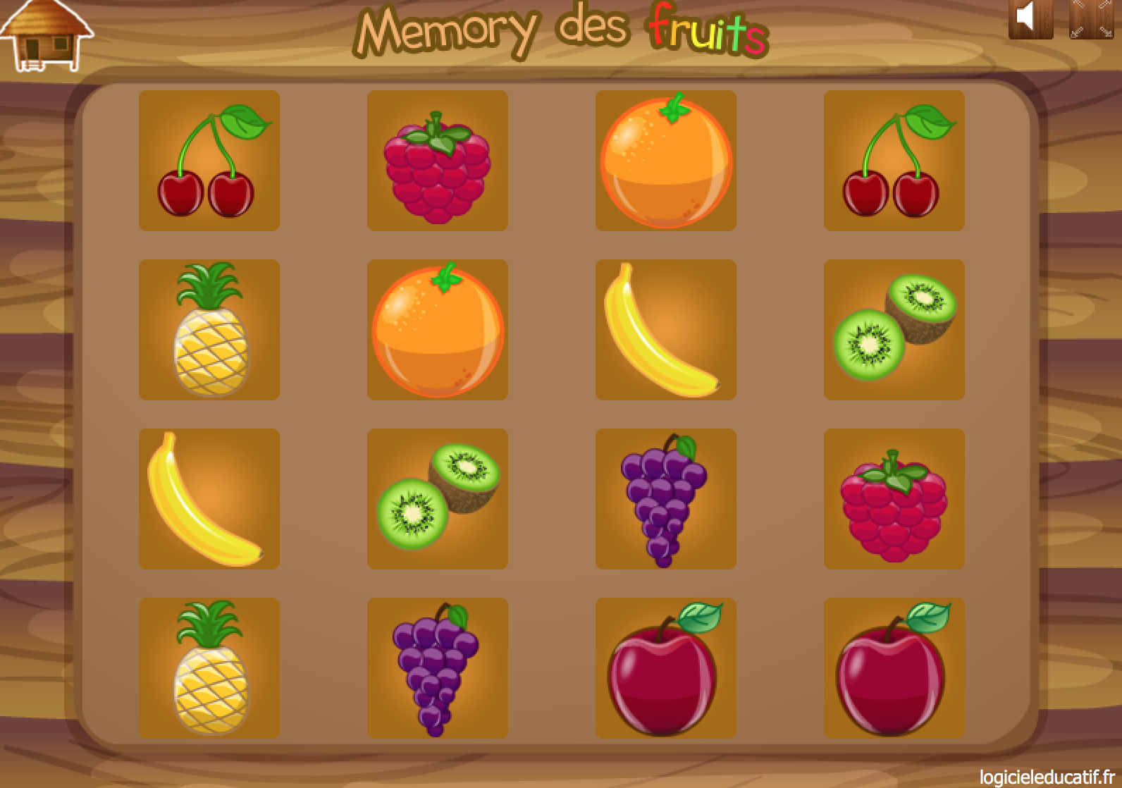 Ce memory des fruits est principalement destinée aux élèves de 1P, 2P et 3P HarmoS. L'enseignant-e a la possibilité de paramétrer le nombre de cartes (de 6 à 24), le visionnage des cartes avant le jeu ainsi que le temps du visionnage. Trois degrés de memory peuvent être choisi: images/images, images (...)