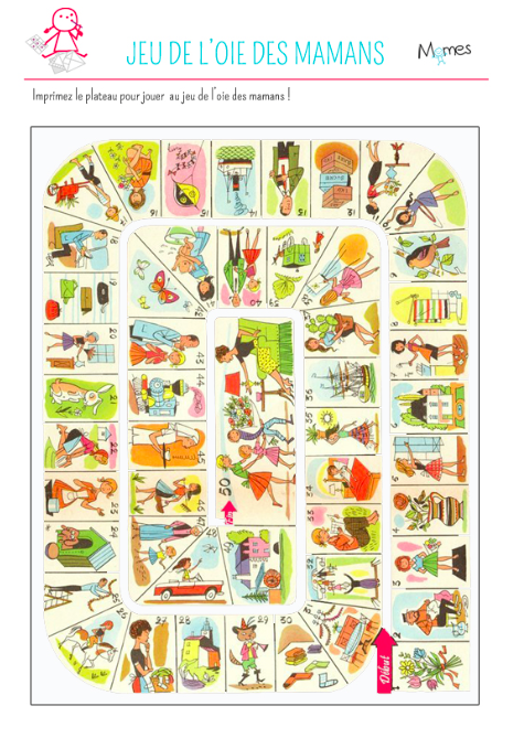 Jeu de l'oie vintage , sur le thème des mamans. A imprimer Joli jeu à effectuer au moment de la fête des mères