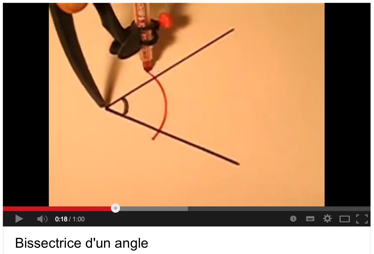 Vidéo spécialement conçue pour permettre à des élèves de réviser à la maison les matières étudiées en classe. Ici : construction de la bissectrice d'un angle Une bissectrice est une demi-droite qui coupe un angle en deux parties égales. PER > > MATHÉMATIQUES > ESPACE > CYCLE 3