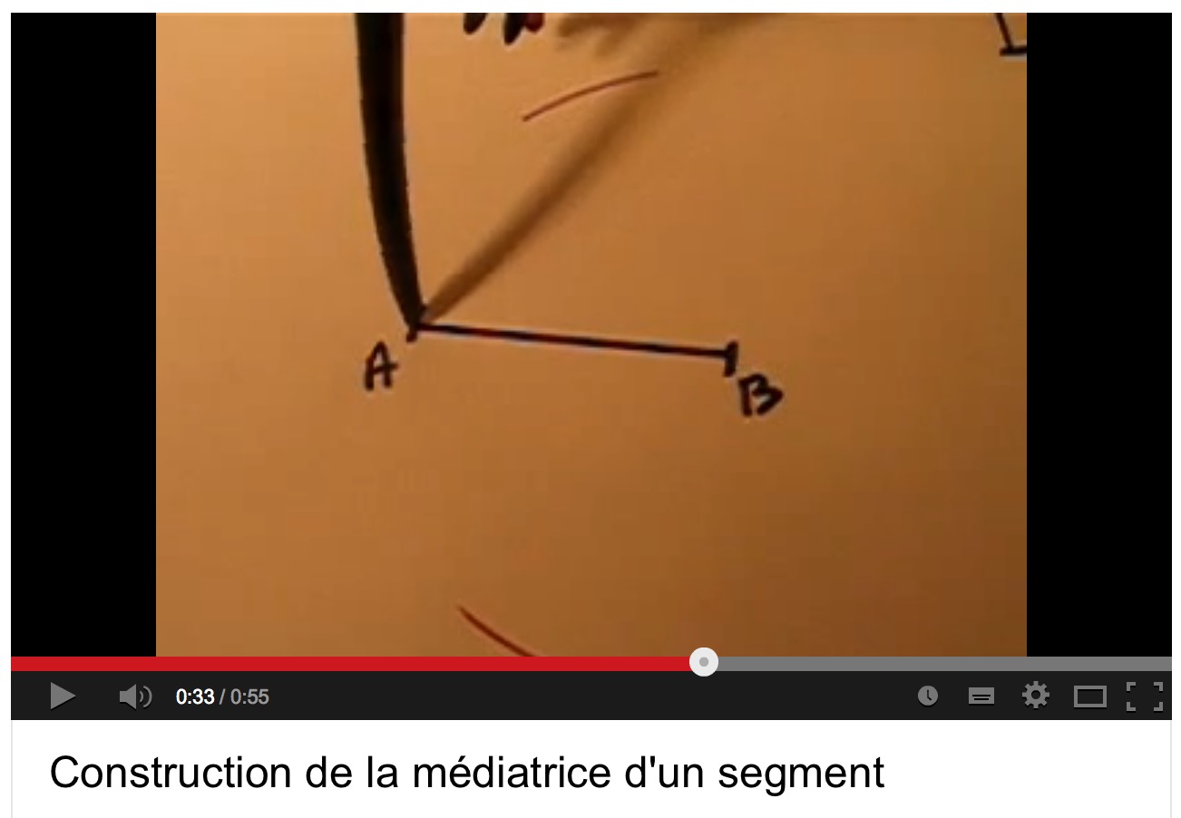 Vidéo spécialement conçue pour permettre à des élèves de réviser à la maison les matières étudiées en classe. Ici : construction de la médiatrice d'un segment. En géométrie plane, la médiatrice d'un segment est l'ensemble des points équidistants des extrémités du segment. Cet ensemble est la droite (...)