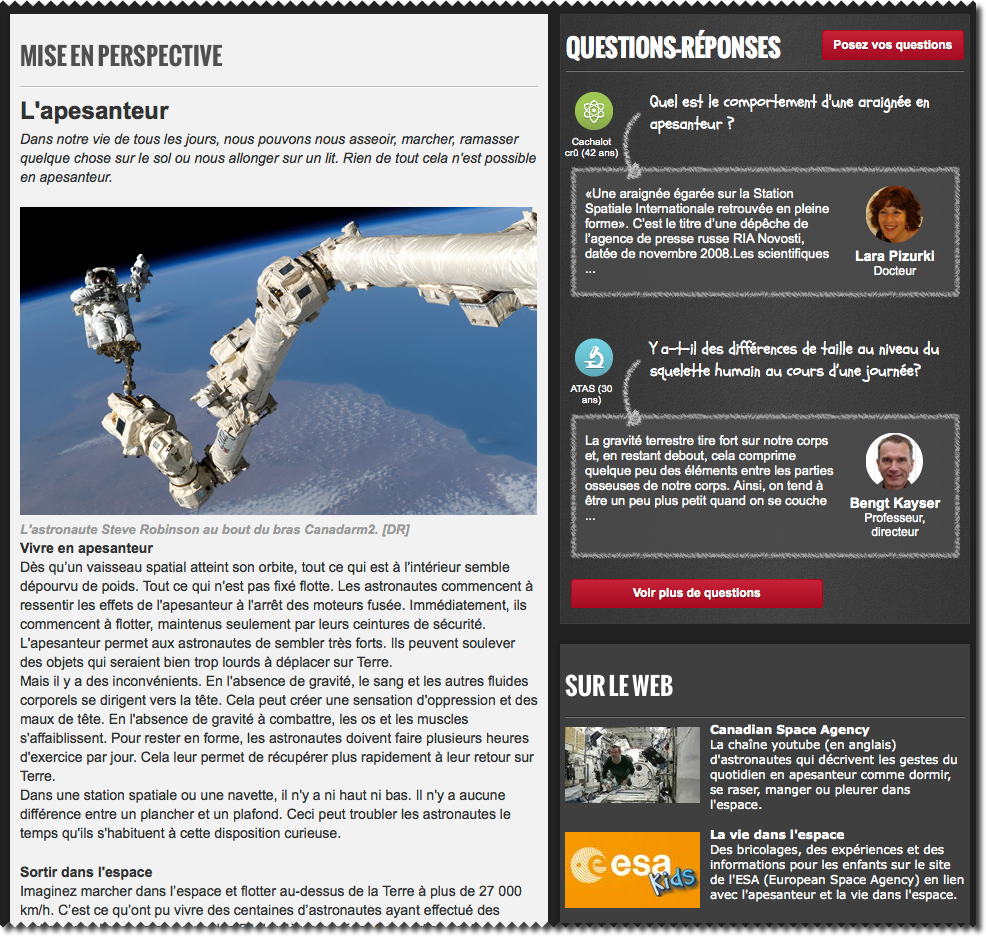 Voici un site super où on peut trouver plein de petits reportages, des films sur des thèmes. Des questions-réponses sur plusieurs sujets. Si vous avez besoin de préparer une leçon, si vos élèves doivent chercher de l'information sur un thème, si vos élèves ont une question, il y aura surement une (...)