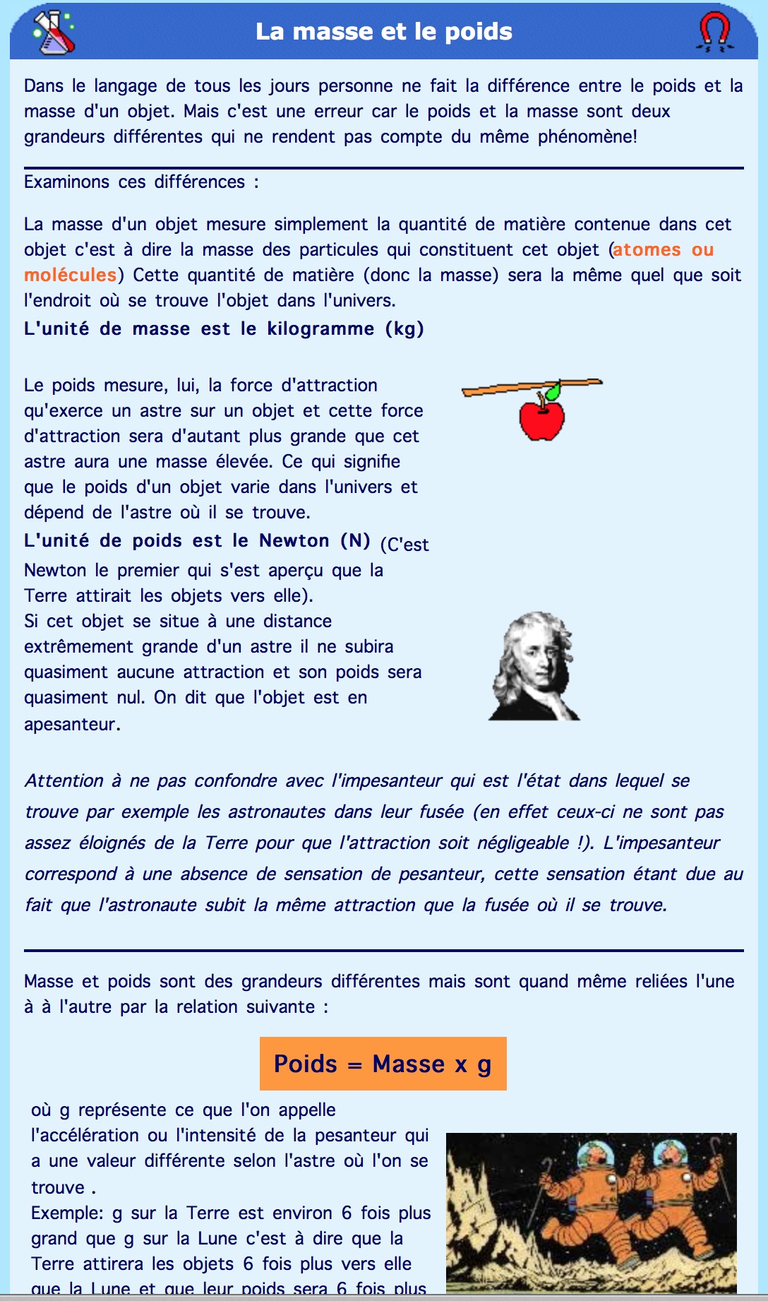 L'apesanteur (ou impesanteur) est l'état d'un corps projeté dans l'espace à une vitesse suffisante pour échapper à la gravitation, ce qui abolit la notion de poids. C'est en fait une chute libre sans fin. Qui n'a jamais rêvé de pouvoir voler dans les airs? Tentez l'expérience avec ce dossier grâce à (...)