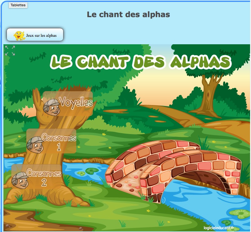 Logiciel éducatif qui travaille l'association d'un alpha avec son chant