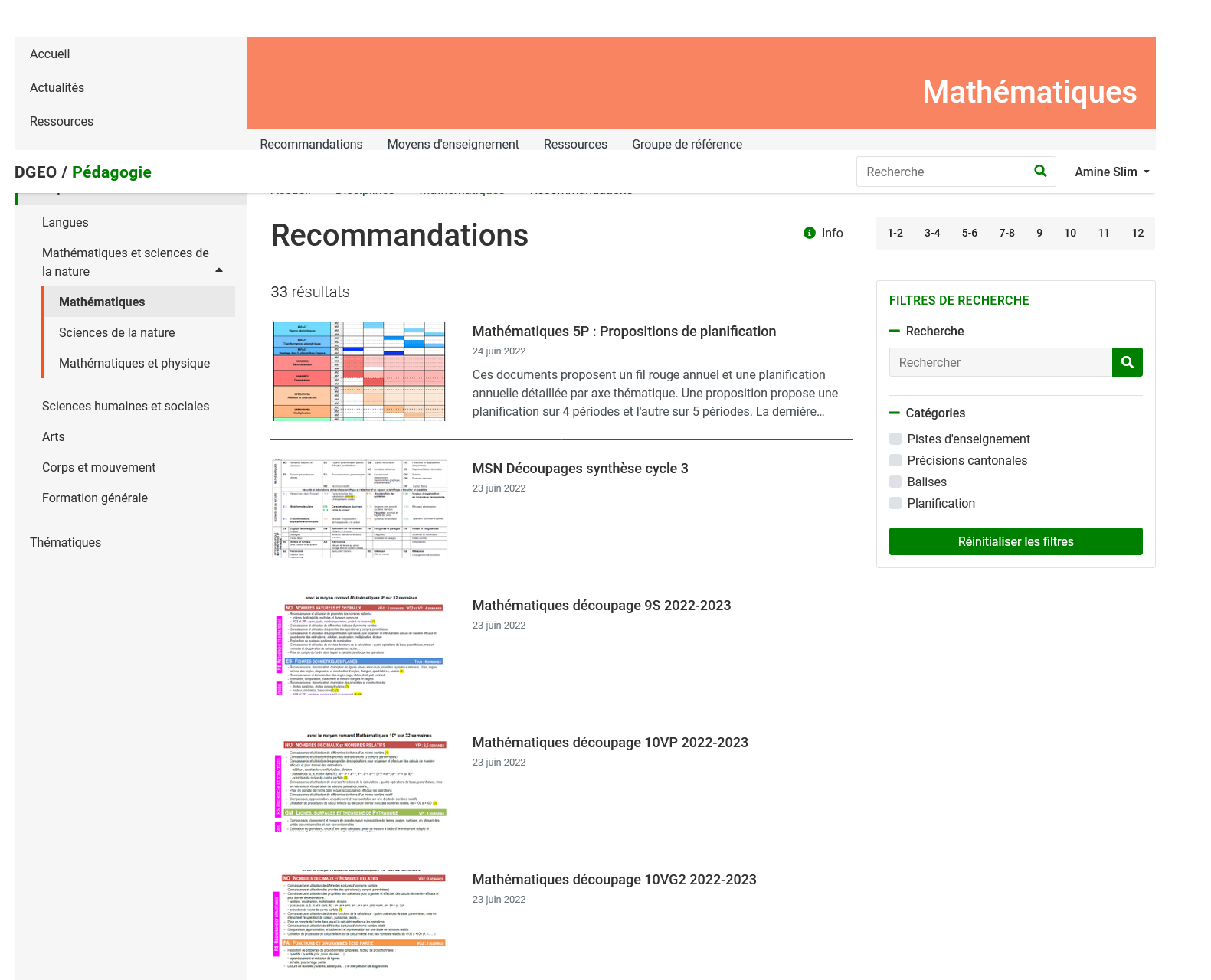 Planification en mathématiques issue de la DGEO