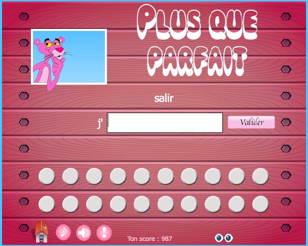 Ce jeu, comme son nom l'indique, a pour but de travailler le plus que parfait ! La mise à jour du 23 octobre 2014 a revu complètement le fonctionnement. Il s'apparente à la série des autres jeux sur la conjugaison du site. Le principe est identique. L'autre système était moins pertinent après (...)