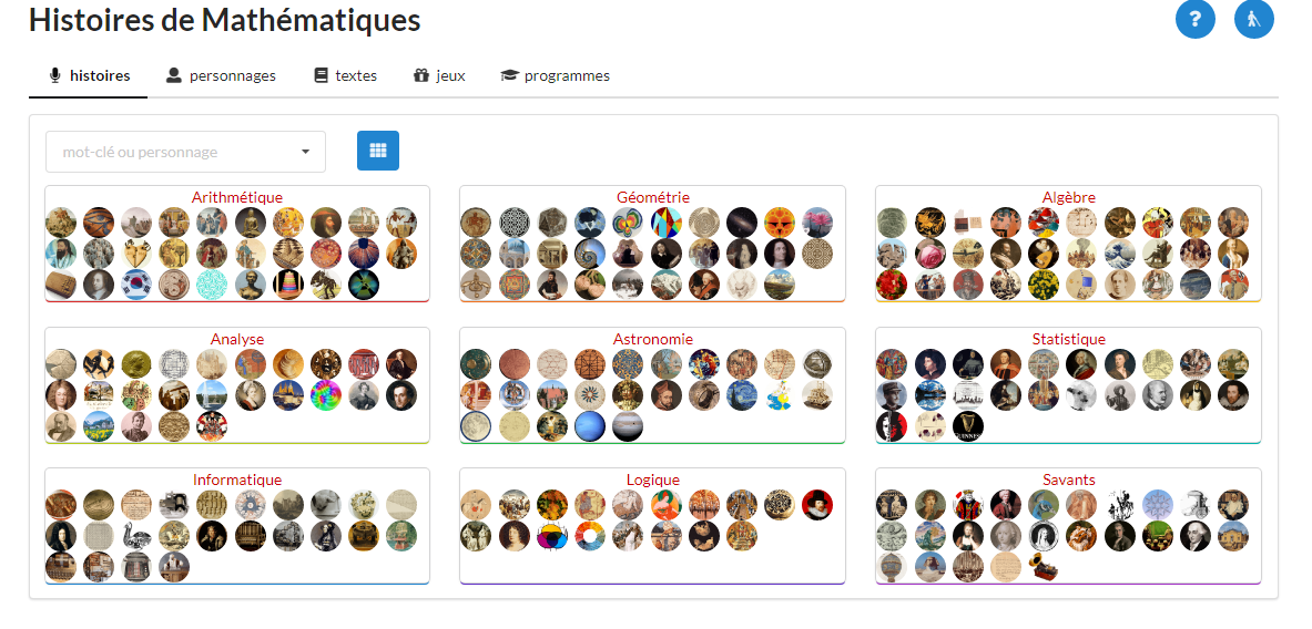 Ce site est l'aboutissement d'un travail remarquable de Bernard Ycart. Il contient 228 histoires sur les notions mathématiques enseignées au college, lycée, et à l’université. Vous pouvez retrouver une interview de Bernard Ycart sur le site MathémaTice.