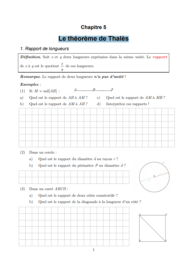 Dossier de géométrie de 74 pages comprenant théorie et exercices (et leurs solutions!) sur les thèmes suivants: Polygones et calculs d'aires Les premiers théorèmes (Pythagore, Thalès, Euclide, ...) Cercles et éléments de cercle Trigonométrie dans le triangle rectangle