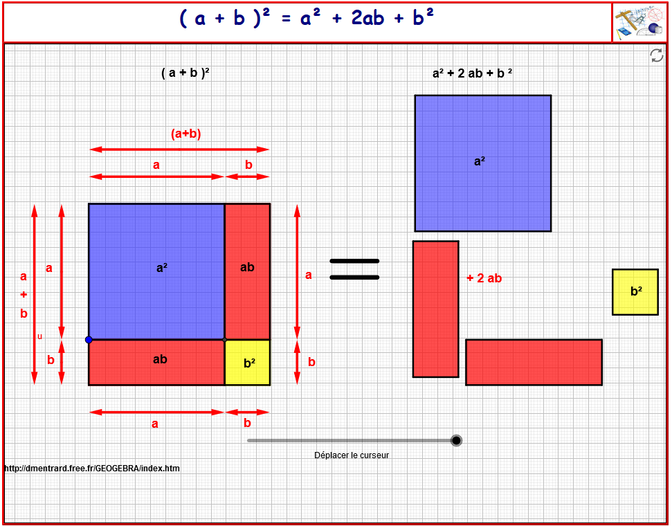 Algèbre : Identité remarquable - illustrer (a+b)² avec GeoGebra
