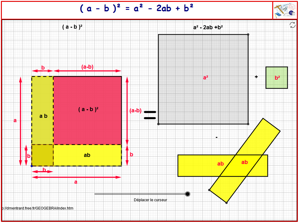 Algèbre : Identité remarquable - illustrer (a-b)² avec GeoGebra