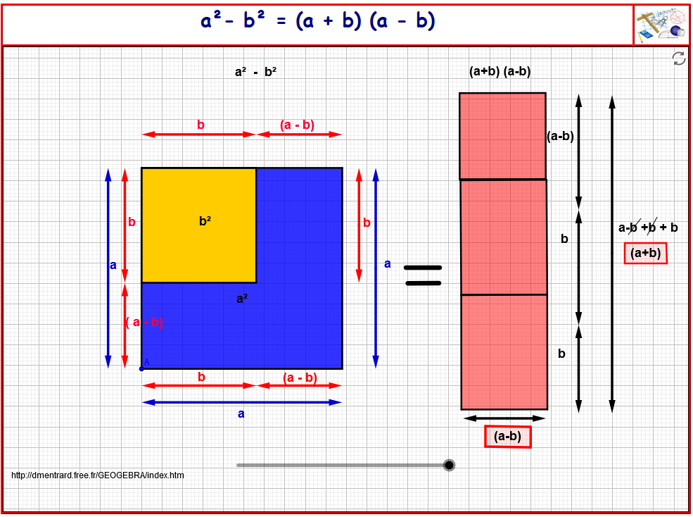 Algèbre : Identité remarquable - illustrer a²-b² avec GeoGebra