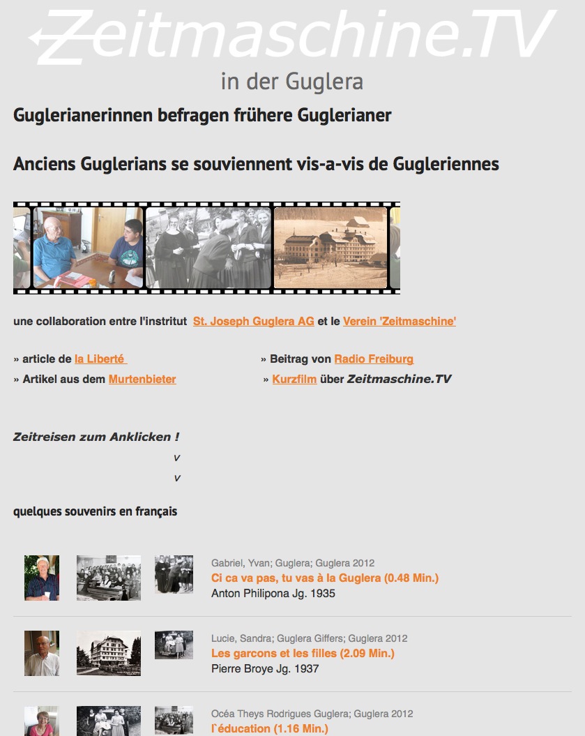 Zeitmaschine.TV propose aux élèves âgés de 15 à 25 ans un jeu relatif à l’histoire orale, au dialogue entre les générations et aux nouveaux médias. Avec la Zeitmaschine-App, les jeunes réalisent des clips sur la base des récits de souvenirs relatés par des personnes âgées. www.zeitmaschine.tv (...)