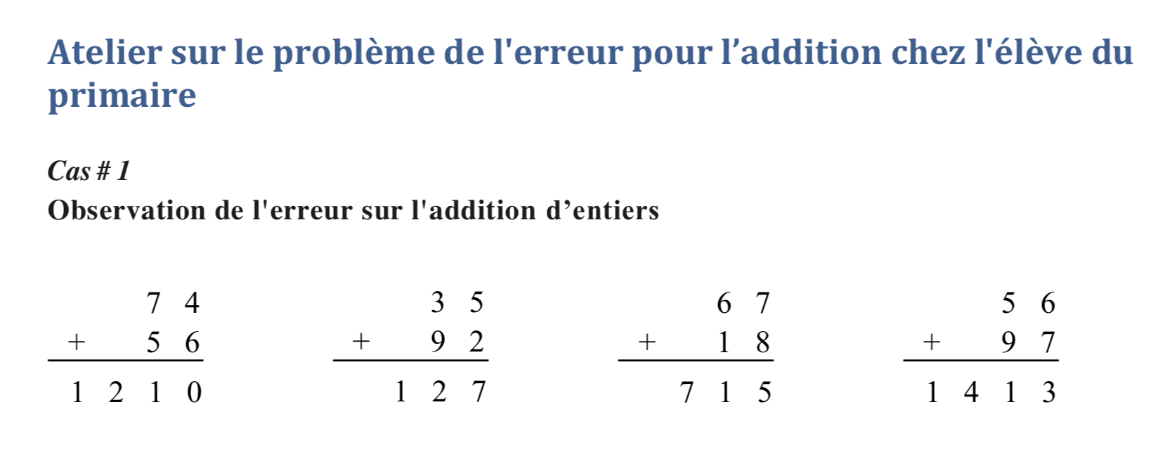 Atelier sur le problème de l'erreur pour l’addition chez l'élève du primaire