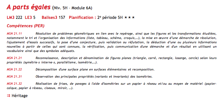 Le catalogue des activités de mathématiques reprend toutes celles qui figure dans le matériel COROME pour les degrés 5 et 6P (soit le matériel 3 et 4P). Elles sont classées en 5P et 6P, puis par ordre alphabétique pour être facilement retrouvables. Pour chaque activité, vous trouvez : le titre et le (...)