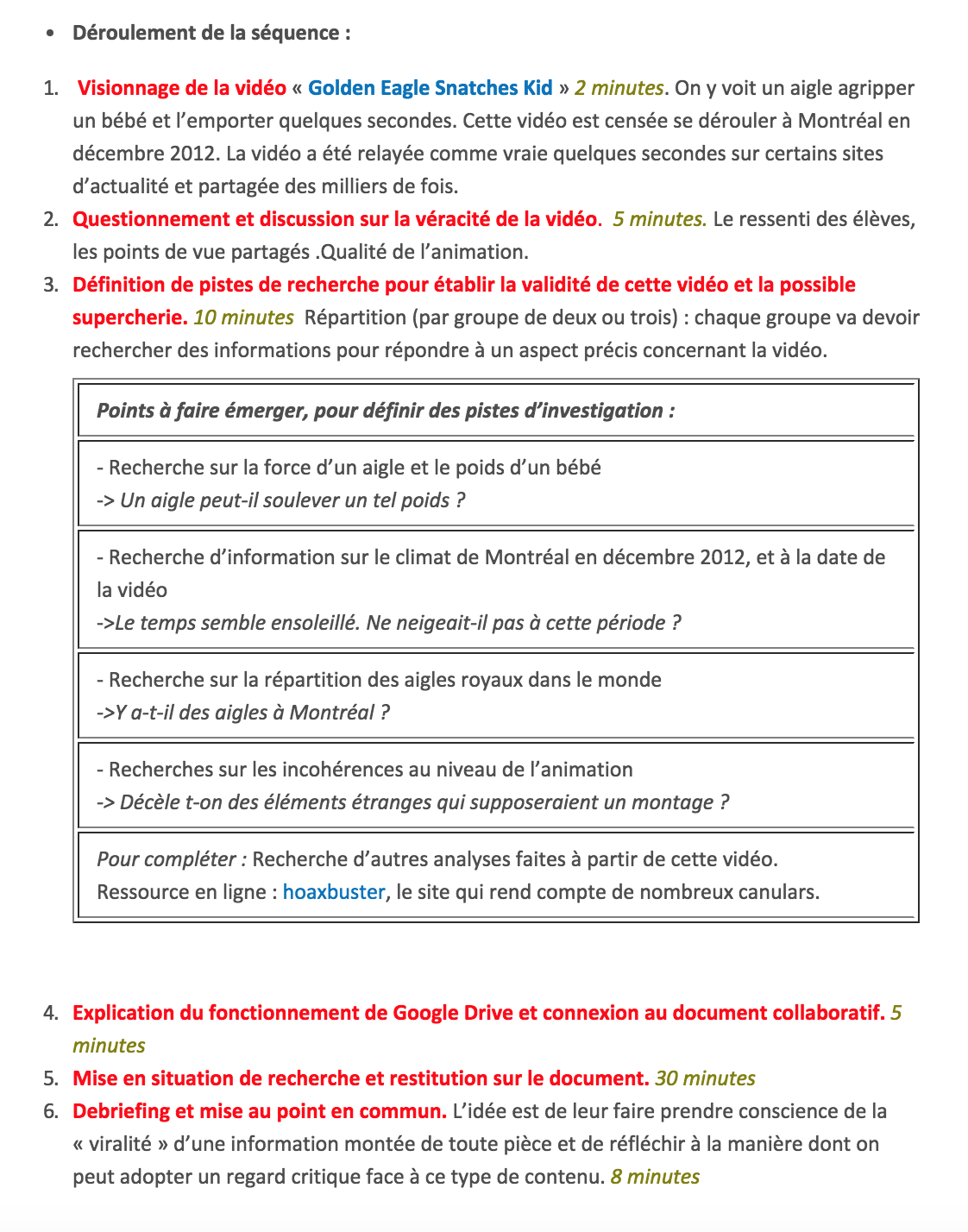 Une chasse au canular collaborative Descriptif Objectifs pédagogiques Adopter une attitude critique et analytique des informations et des contenus qui se diffusent via les outils du web (messagerie, médias en ligne, réseaux sociaux). Utiliser un outil d’écriture collaborative afin de produire un (...)