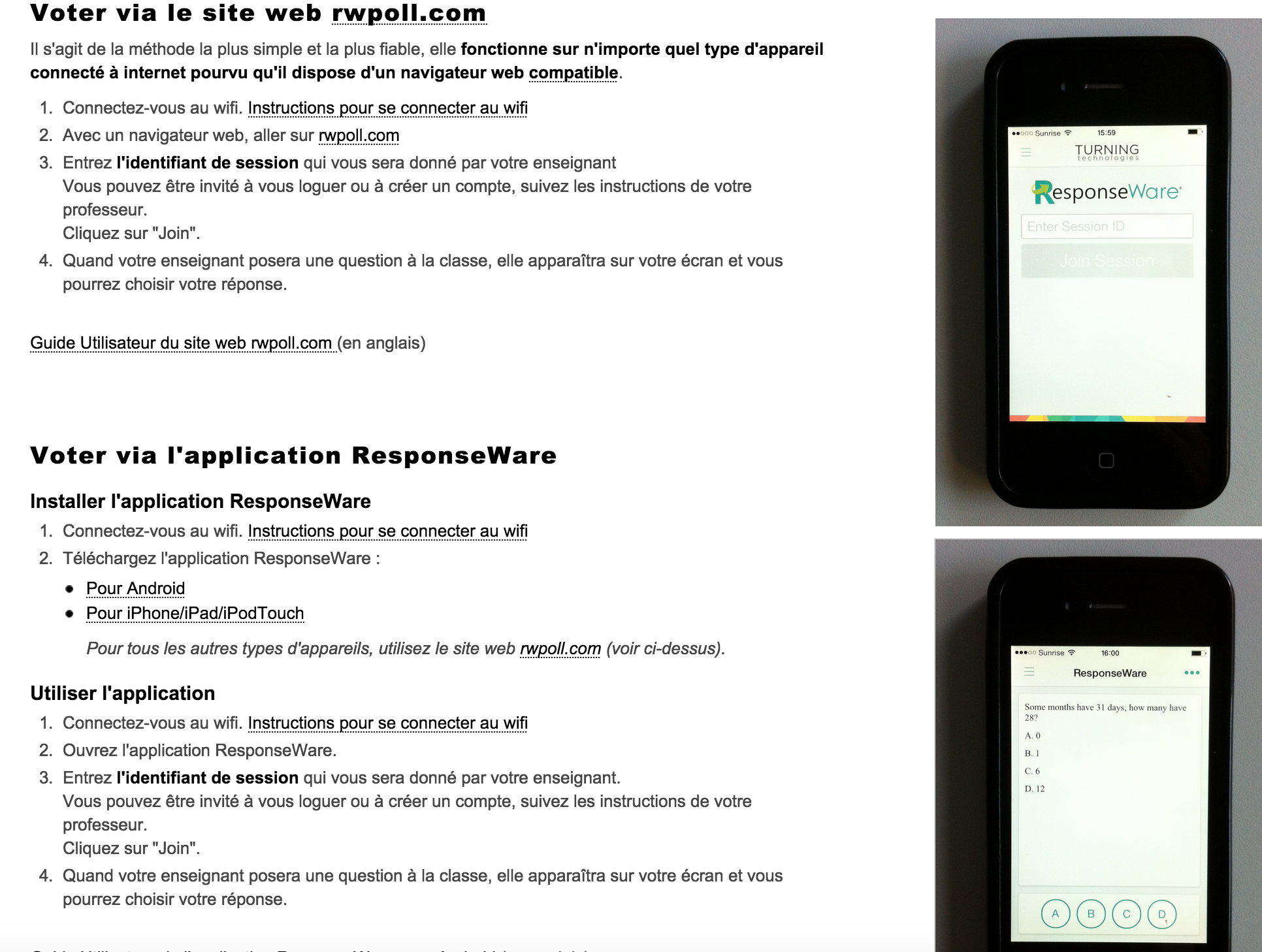 Concevoir votre cours basé sur les clickers plus d'interactivité = moins de présentation ! Les clickers ne sont pas particulièrement utiles ou révolutionnaires en eux-même. Ce ne sont que des outils, et c'est la façon dont vous les utiliserez qui importe. Thèmes développés : Préparez vos questions (...)