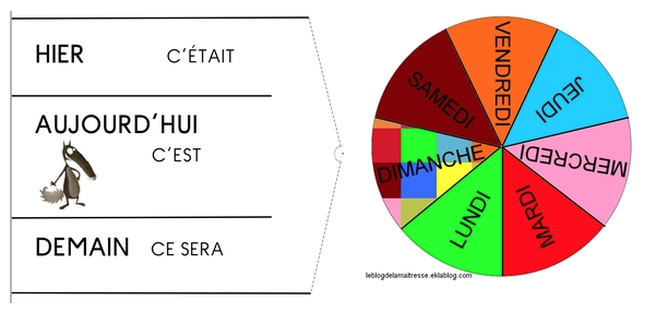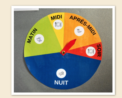 Roue qui permet aux élèves de mieux se répérer dans le temps. Bon moyen de travailler hier, ajourd'hui et demain