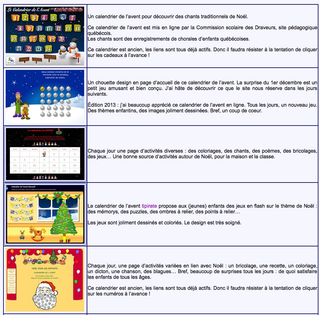 Présentation de différents calendriers de l'avent en ligne testés par Anyssa de la classe des gnomes