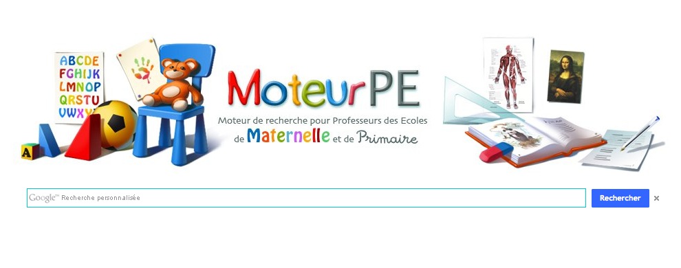 Moteur PE est un moteur de recherche per­son­na­lisé Google qui s'adresse aux pro­fes­seurs des écoles de la mater­nelle au CM2 (2e-7e Harmos). Il per­met de trou­ver en un clic de nom­breuses ressources. En tapant par exemple "dic­tées CP", "pâte à mode­ler mater­nelle", "exer­cices maths ce" (...)