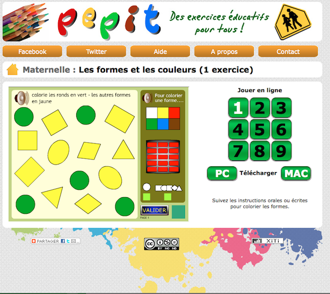 Ce logiciel permet de travailler les formes et les couleurs, en particulier avec des 1P et 2P. Les élèves doivent colorier des formes (carré, rond, triangle, ovale, rectangle) en fonction de consignes orales (L1 13-14 : compréhension de consignes pour agir). Il faut donc penser à prévoir des (...)