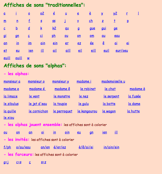 Vous utilisez la méthode des Alphas pour apprendre à lire à vos élèves. Ce site est incontournable! On y trouve des idées, des fiches toutes faites et les illustrations de toutes les lettres.