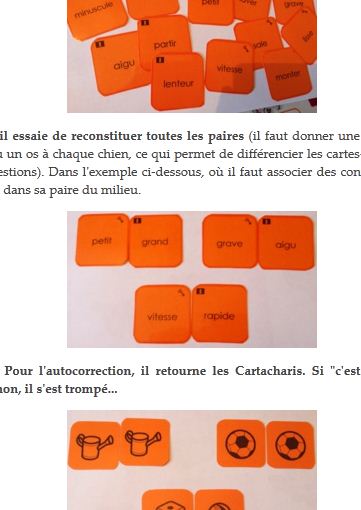 CHARIVARI avait besoin d'activités autonomes intelligentes pour les élèves qui ont fini en avance. Si possible des activités silencieuses, et non écrites pour ne pas crouler sous les corrections. C'est là que CHARIVARI a eu une idée de cartes recto-verso. C'est franchement tout bête. Il s'agit de (...)