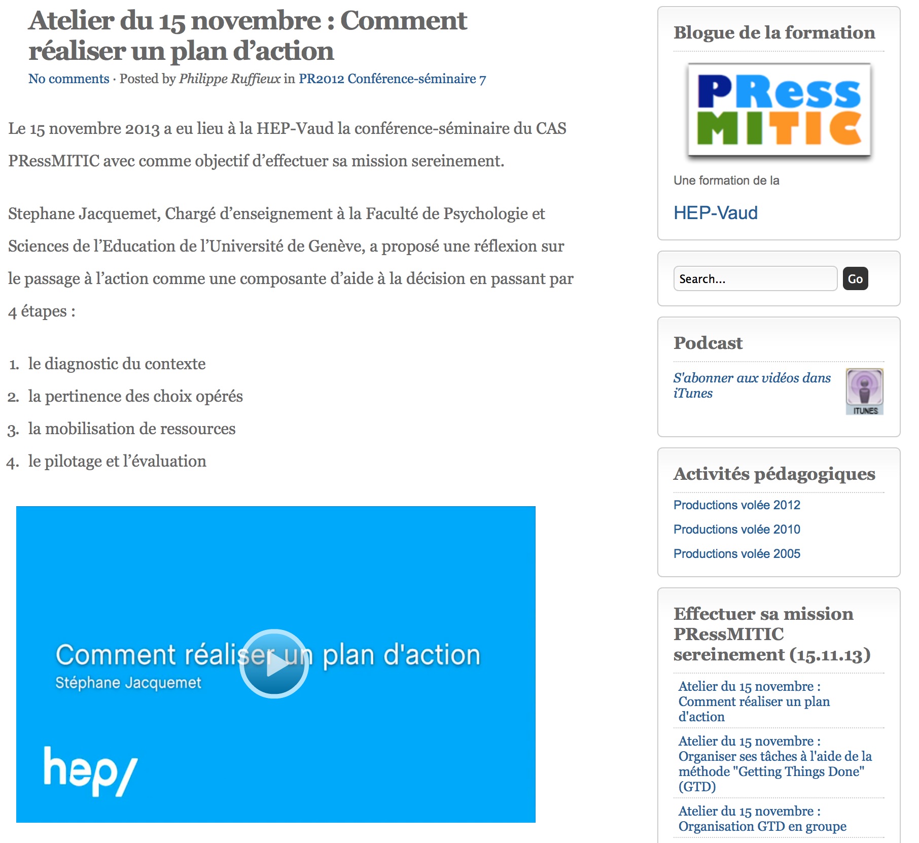 Vidéo expliquant comment réaliser un plan d'action en 4 étapes : le diagnostic du contexte la pertinence des choix opérés la mobilisation de ressources le pilotage et l’évaluation Stéphane Jacquemet est chargé d’enseignement à la Faculté de Psychologie et Sciences de l’Education de l’Université de (...)