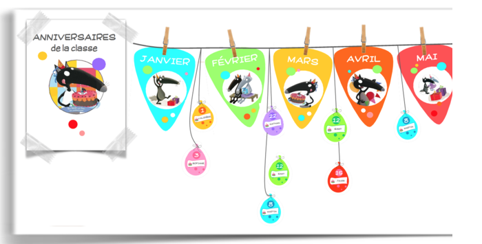 Jolies idées pour afficher en classe les dates des anniversaires des élèves. Matériel pour la rentrée scolaire