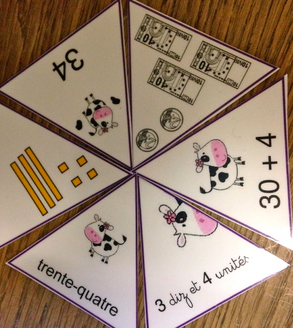 Utiliser les dominos pour effectuer des multiplications, des additions, selon l'âge des enfants. Utiliser sous forme de jeu.