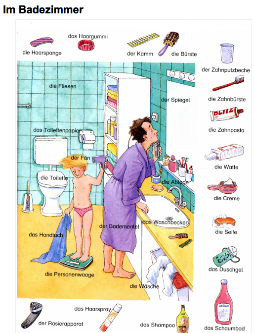 Site illustré pour de travailler le nom des objets courants en allemand.