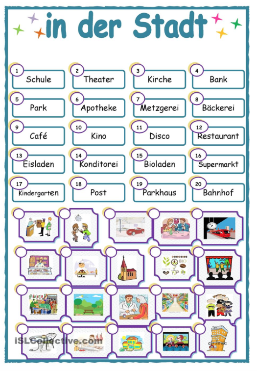 Fiche afin de travailler le vocabulaire de la ville en allemand