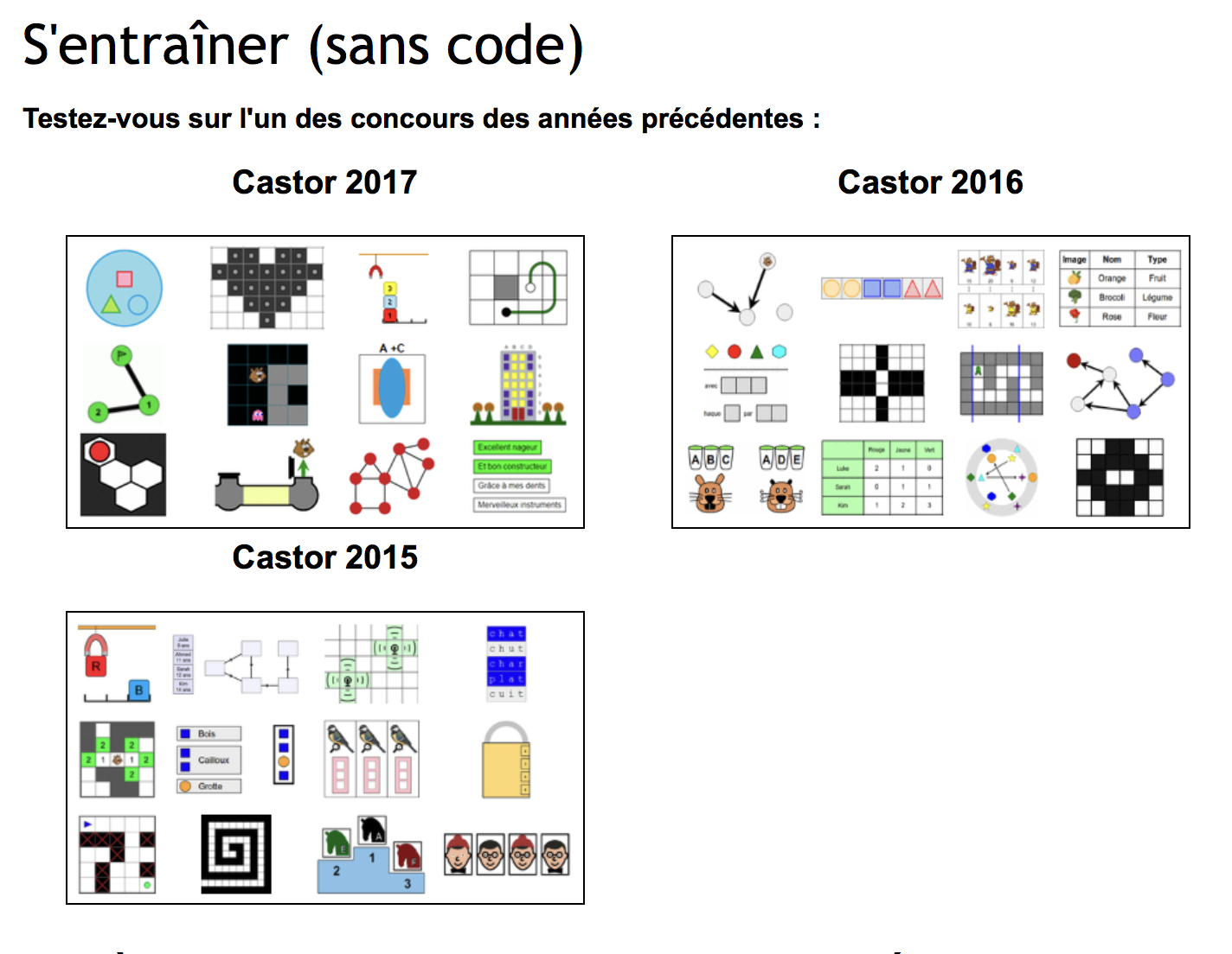 Le concours Castor vise à faire découvrir aux jeunes l'informatique et les sciences du numérique. Le concours est organisé tous les ans, vers le début du mois de novembre. Il se déroule sous la supervision d'un enseignant, en salle informatique. Le concours dure 45 minutes et comporte environ 18 (...)