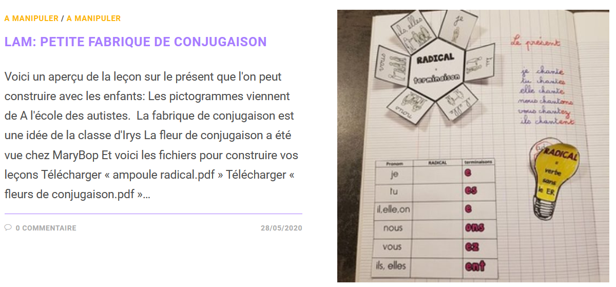 Vous aimez les leçons à manipuler ? alors vous allez adorer ce site ! Par exemple une chenille des multiplications, les pronoms personnels sujets, une petite fabrique à conjugaison... Les enfants aiment :D