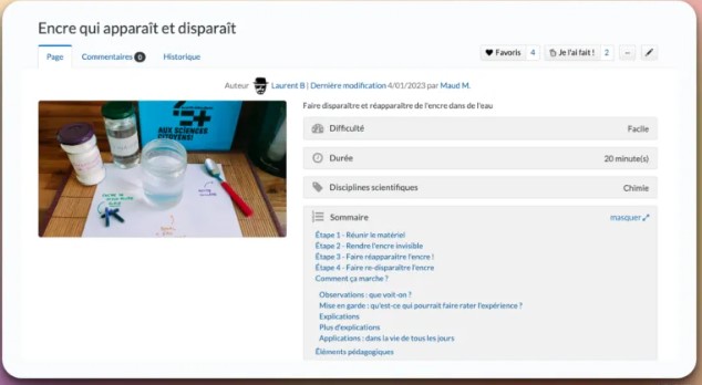 SI vous cherchez un moyen d’animer les cours de sciences, Wikidebrouillard est une ressource à tester ! Cette encyclopédie d’expériences scientifiques libre et gratuite est une excellente ressource pour pimenter vos leçons et stimuler la curiosité En cliquant sur le menu expériences en haut de la (...)