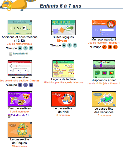 Selection de jeux éducatifs pour tous les âges. Divers jeux sur des thèmes variés, pour tous les âges