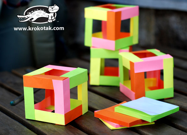 Des cubes Matériel : post-it de 3 couleurs différentes. Plier...coller. (voir en images la marche à suivre)