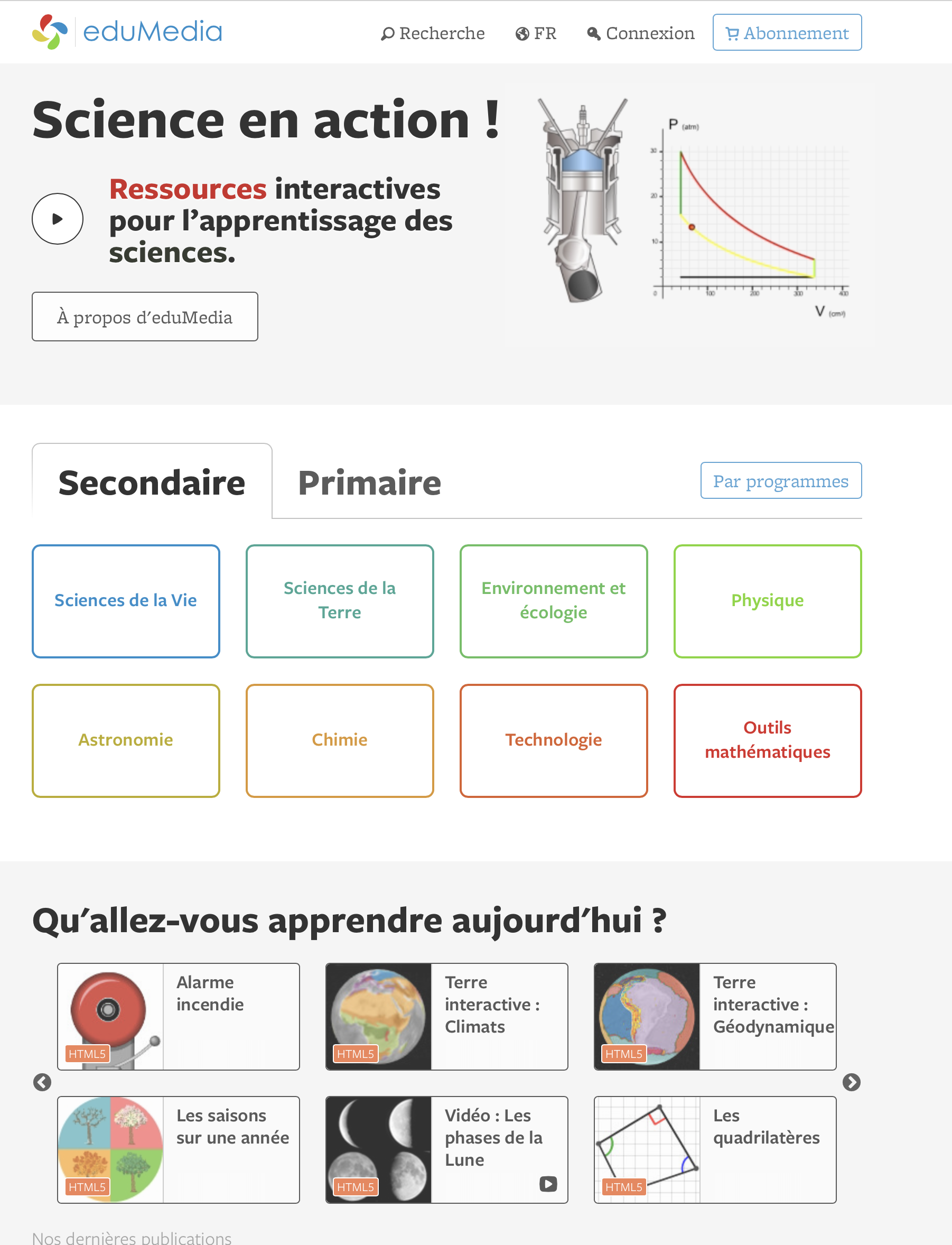 Des centaines d'animations pour l'apprentissage des sciences et des mathématiques. Extrait: ● l’addition et la soustraction des couleurs, ... ● la pollinisation, la eur, l’arbre, les fruits, ... ● le cycle de l’eau, traitement des eaux usées, ... ● les cinq sens, la digestion, le squelette, l’œil, (...)