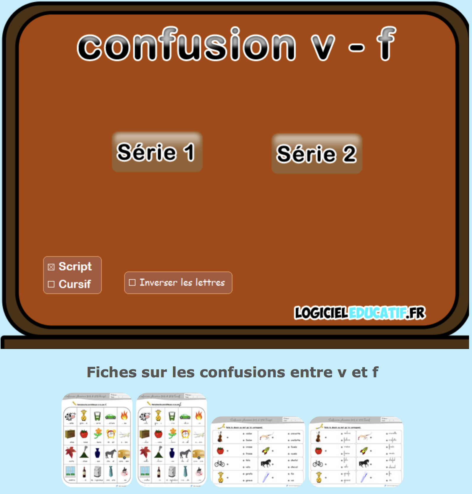 Logiciel éducatif simple d'utilisation. Permet aux élèves (lecteurs et non-lecteurs) d'exercer ainsi que de vérifier leurs connaissances sur les graphèmes correspondant aux sons ainsi que la distinction entre ces deux sons proches. (Mais malheurement pas la présence de tous les graphèmes (...)