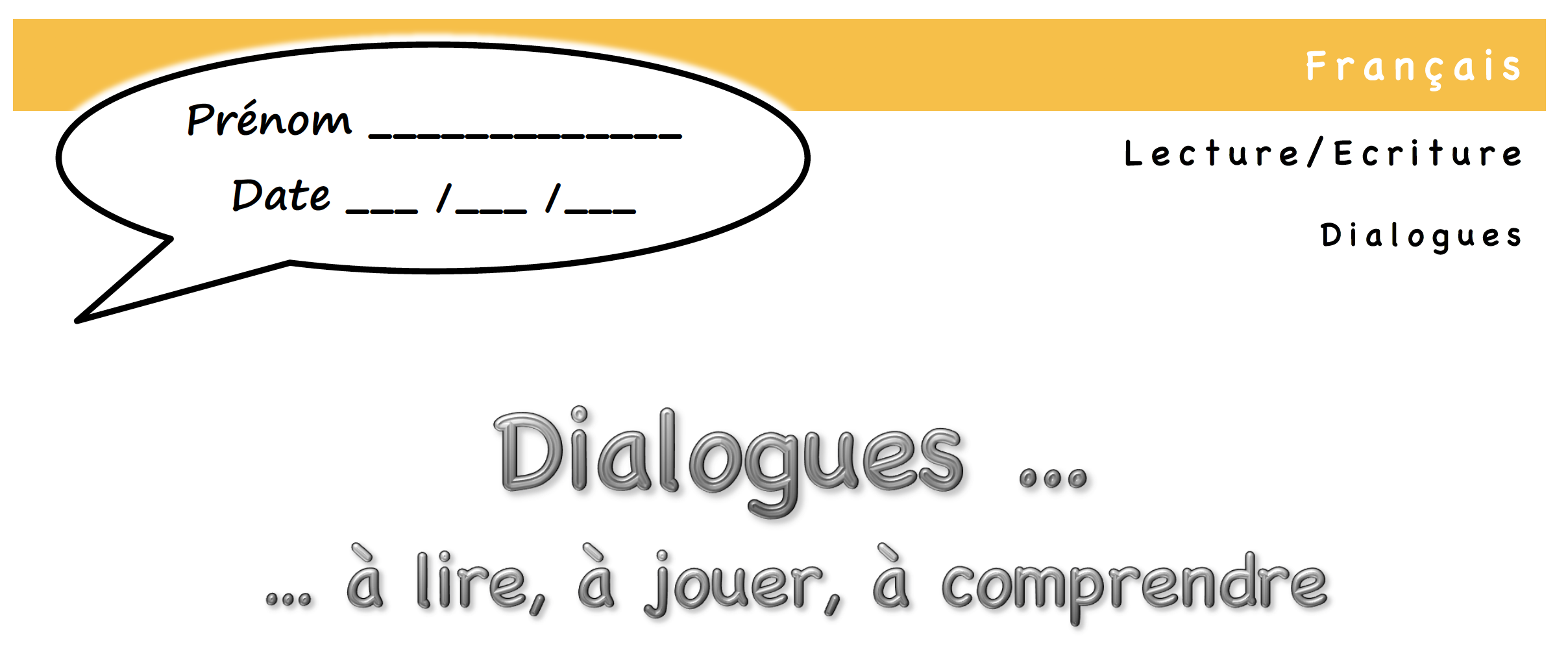 Si le dialogue n'est pas au programme "tout seul", il fait partie intégrante des écritures de récits (conte, conte merveilleux, récit d'aventure, ...). Ce document présente ses carqactéristiques et modalités principales à partir de lecture et/ou de jeux théâtraux.
