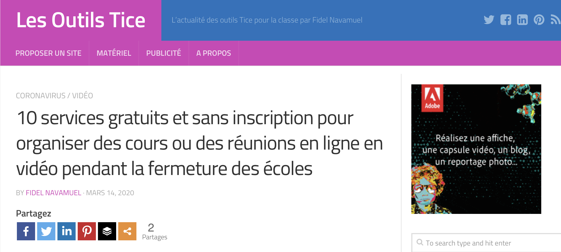 Arte met en accès libre, le temps de la fermeture des écoles françaises, sa plateforme éducative avec plus de 1'300 vidéos! Possibilité d'éditer les vidéos, d'ajouter des quiz. Possibilité de les partager avec vos élèves sans qu'ils n'aient à transmettre leurs données personnelles. Courrier que vous (...)