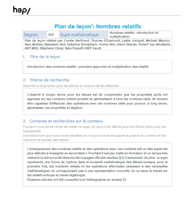 Degré : 9H Discipline : Mathématiques Mots clés : Nombres relatifs, multiplication Date : Mai 2019 Vous pouvez retrouver l'ensemble des plans de leçons du Laboratoire Lausannois Lesson Study (3LS) sur le site web suivant: Laboratoire Lausannois Lesson Study (3LS).