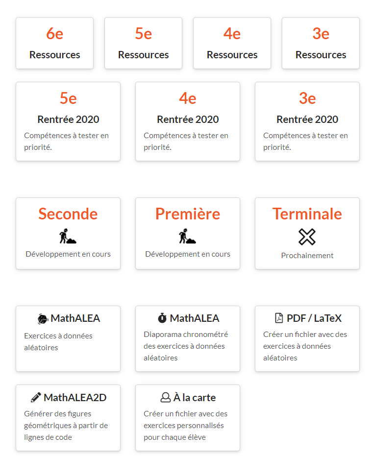 Ce site créé par des enseignants de mathématiques en exercice a pour vocation de mutualiser des outils calibrés pour s’intégrer dans une logique de personnalisation des apprentissages en mathématiques au collège.