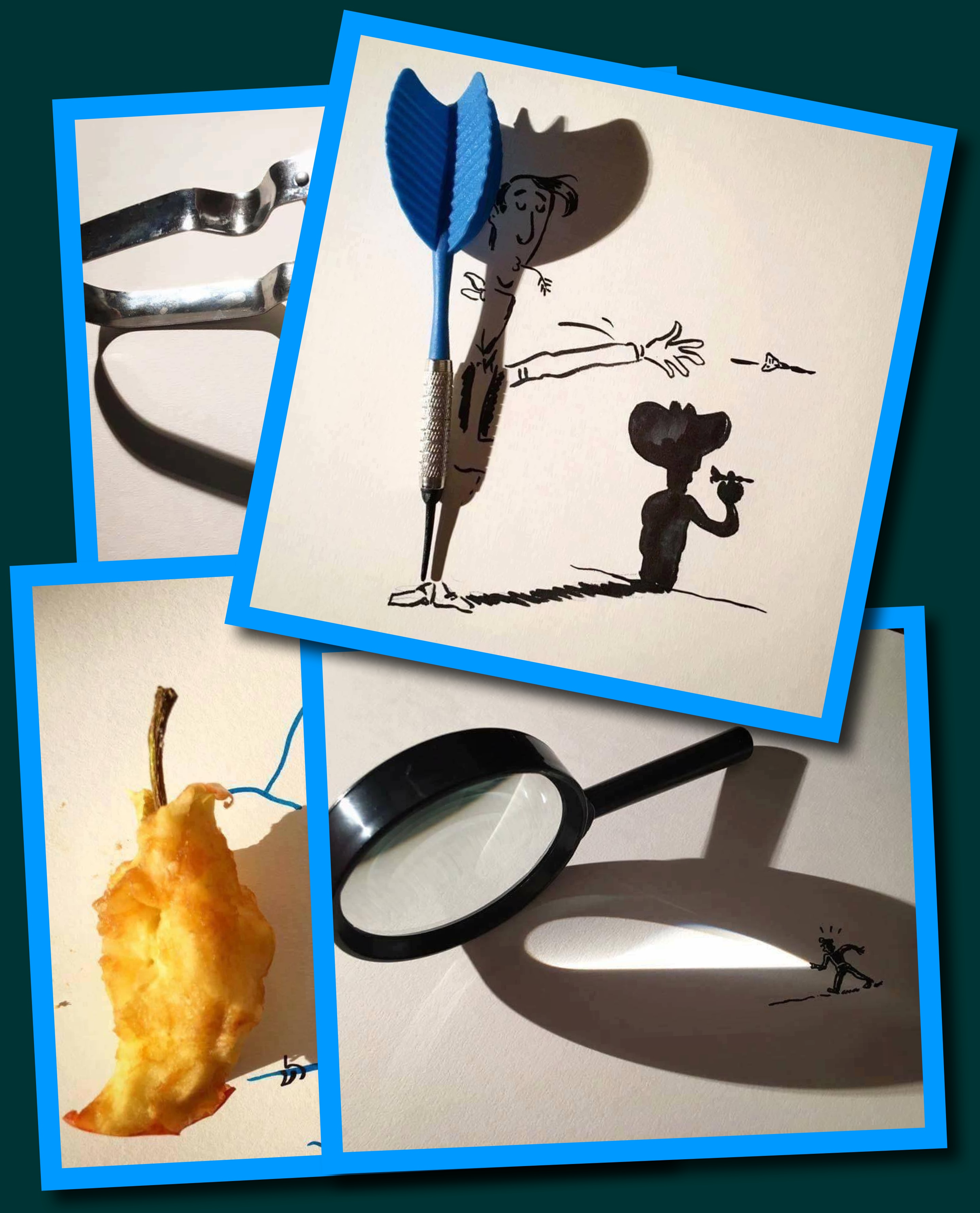 Imagination en marche ! Utiliser l'ombre d'un objet pour créer un nouveau dessin. (le lien nous emmène sur facebook)