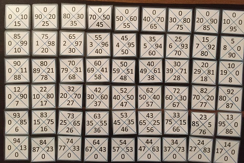 Jeu du "quatromino" pour réviser les compléments à 100. .........si je ne peux pas jouer, je tire une nouvelle carte dans le pot commun puis je joue ou passe mon tour. Le vainqueur est celui qui s'est débarrassé de toutes ses cartes en premier. Cliquer ....imprimer....plastifier....découper (...)