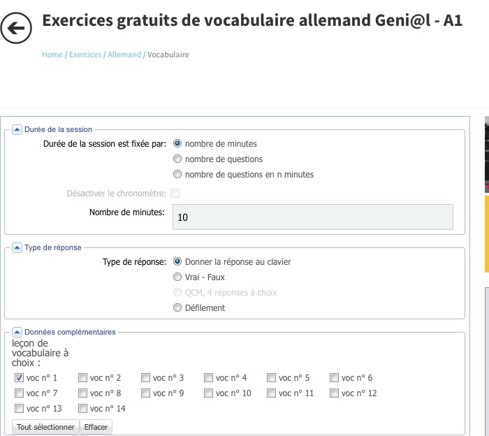 Didacticiel de drill du vocabulaire allemand selon le manuel Geni@l A1 (7P-8P)