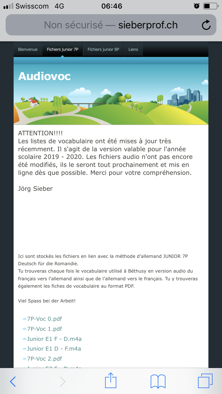 Les vocabulaires junior 7P avec des exercices en annexe Note de l'équipe BDRP : matériel mis à disposition par Samir Abu Omar & Jörg Sieber, de l'ES de Béthusy. Concerne également le vocabulaire junior 8P. À noter qu'il s'agit du choix fait par les enseignants d'allemand de Béthusy et que ces listes (...)