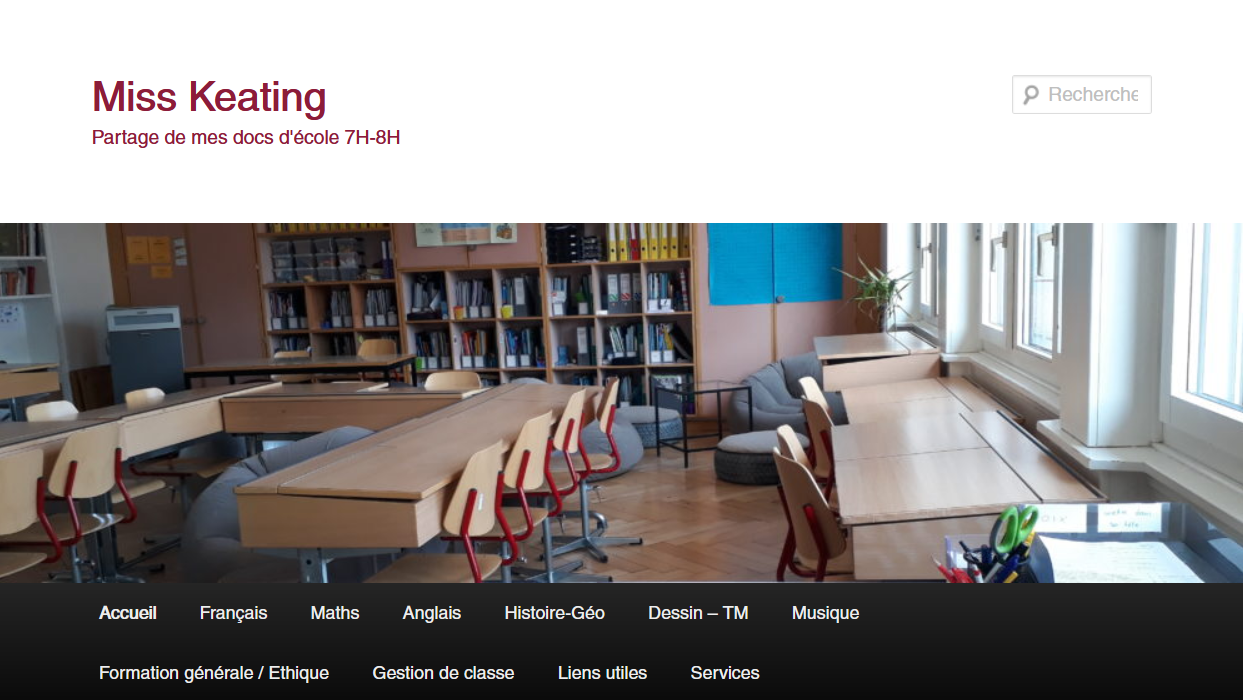 Bonjour ! Trop rare pour ne pas être mentionné, un SUPER site d'une enseignante très compétente, qui nous offre, pour les 7-8H, des documents de grande qualité ! Avec une mention toute spéciale à un onglet ANGLAIS !! Et aussi de l'histoire, de la géo... Miss Keating propose en libre téléchargement (...)