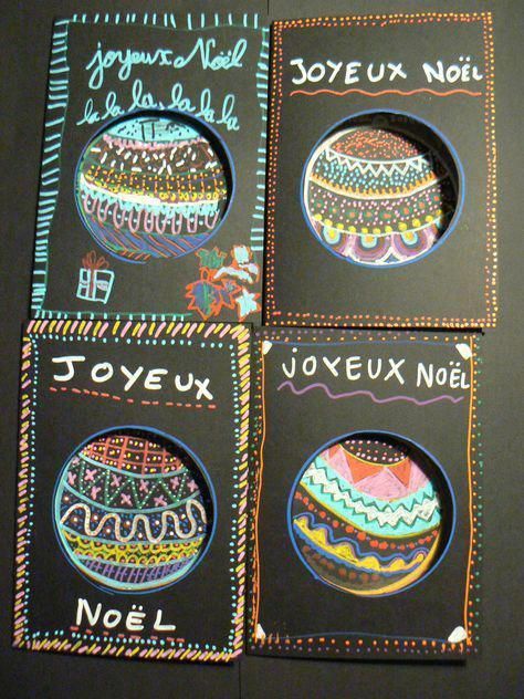Carte de voeux, boule de Noël. Tu vas d'abord prendre une feuille de papier Bristol noire que tu vas plier en deux………… Tuto et idées de décorations sur le site.